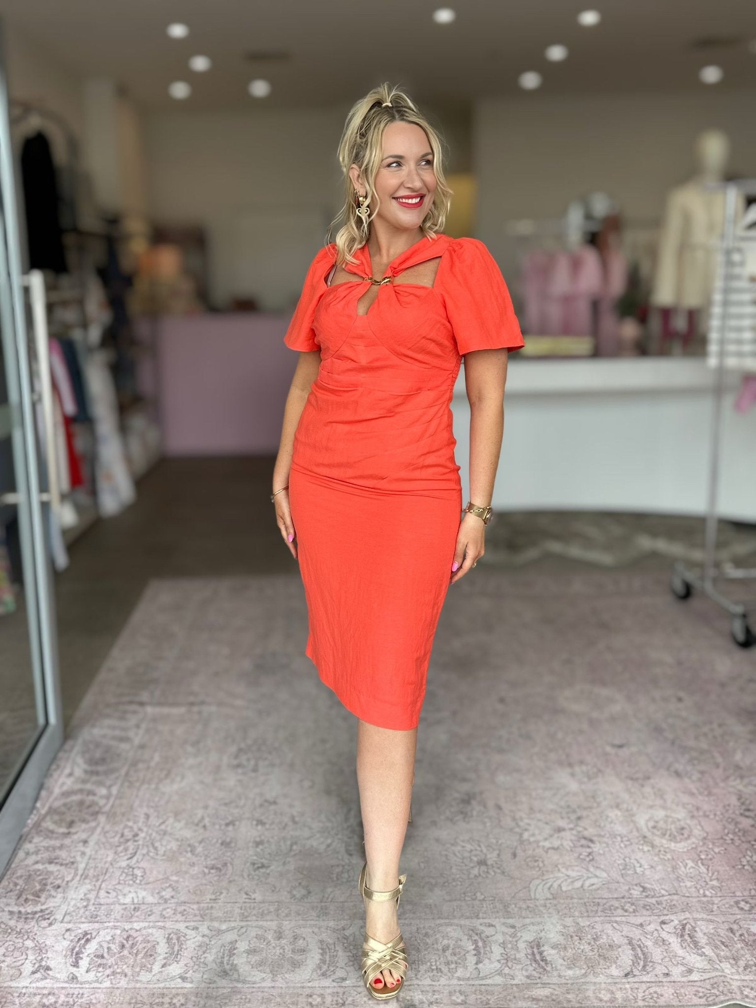 With its modest midi length and body-skimming pencil shape, The Marlowe offers timeless sophistication and effortless appeal — the kind of dress that feels as good as it looks.
