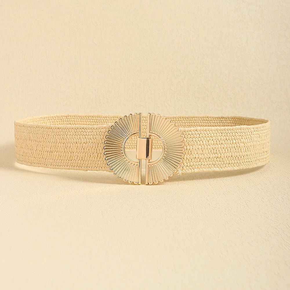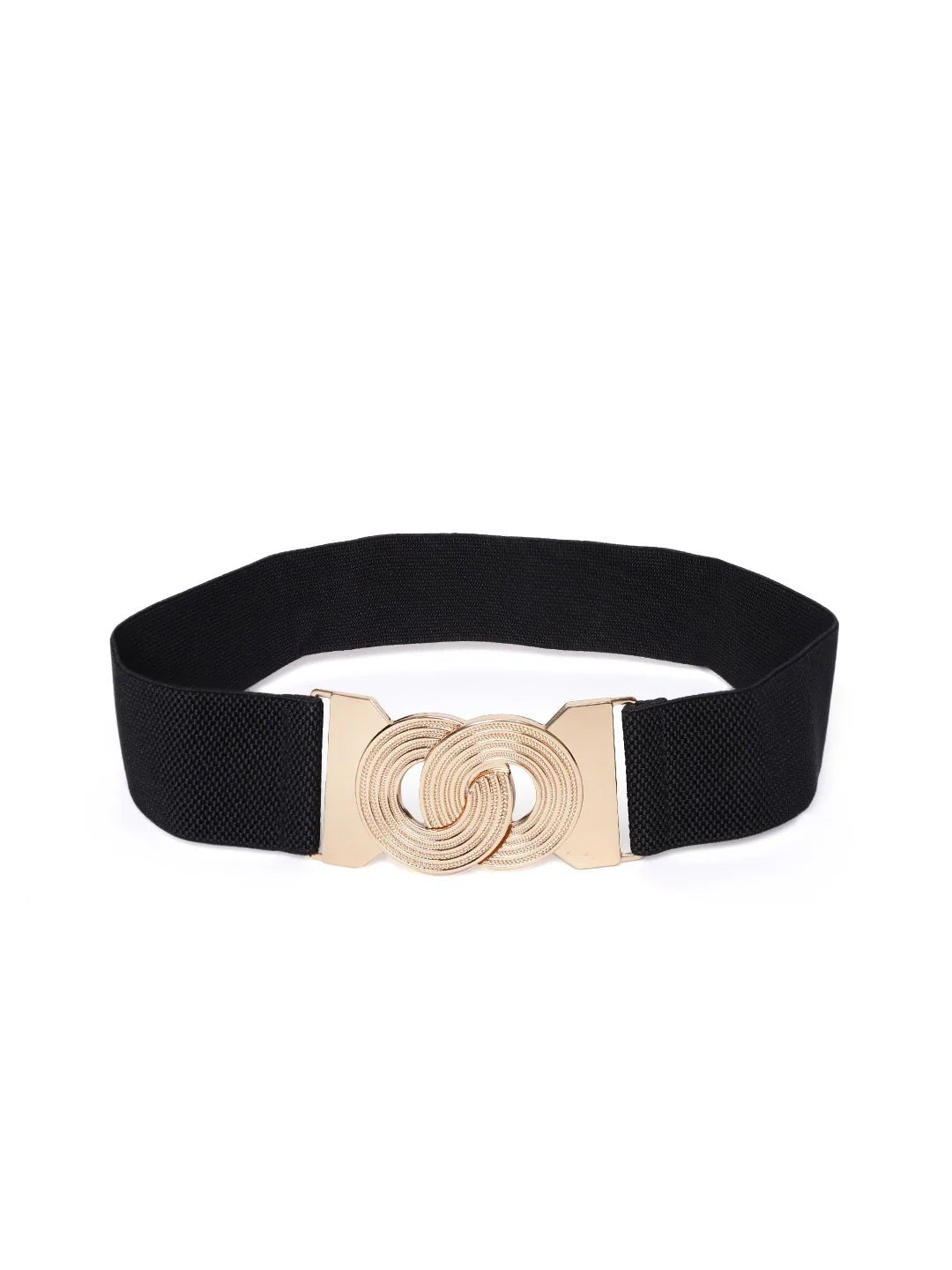 Crafted with a comfortable woven stretch band, they move with you while adding instant polish. Each belt is finished with a statement gold-tone buckle — whether in sculptural circles or textured square links, they’re the ultimate accessories to transform simple outfits into standout looks.