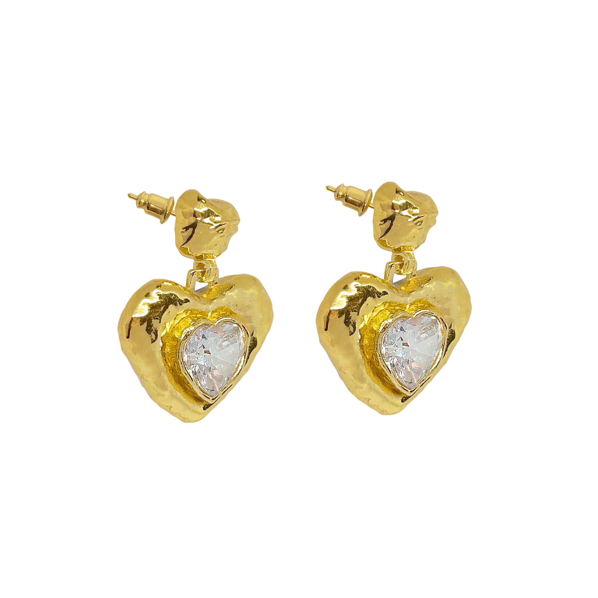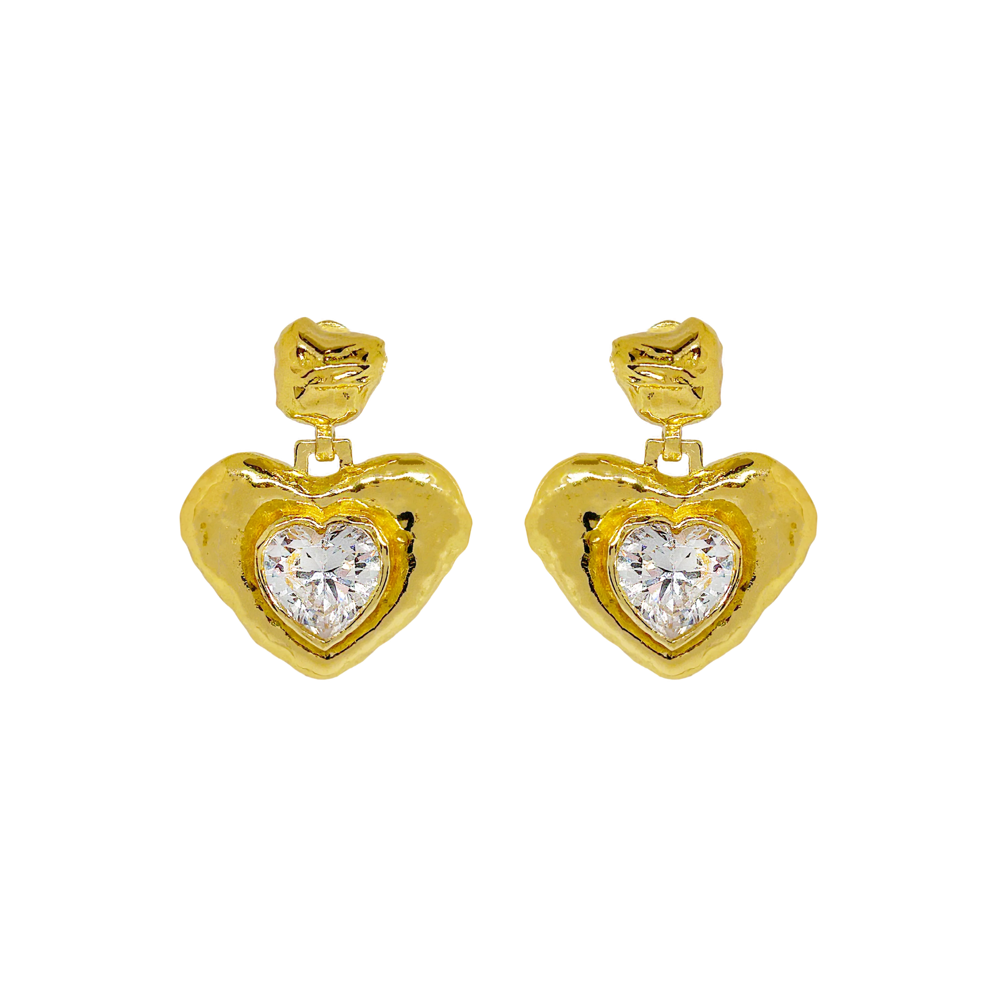 A playful take on a classic feminine motif, the Suri Earrings reimagine the heart through the lens of traditional craftsmanship. Hand-finished in radiant gold with a sparkling White CZ gemstone, the Suri earrings merge age-old design techniques with a fresh, modern spirit. Bold yet tender, they speak to the contemporary woman who honours the past while embracing her own story.