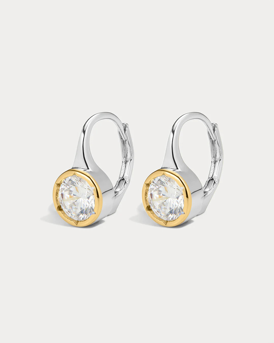 - Statement earrings featuring a hook design and a Bezel Set Round CZ stone