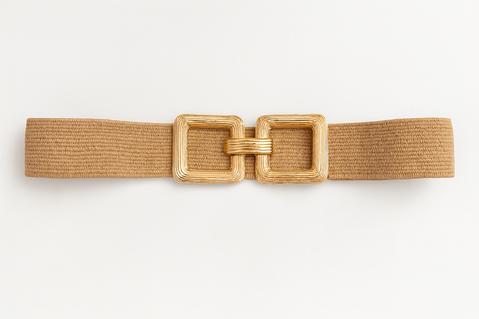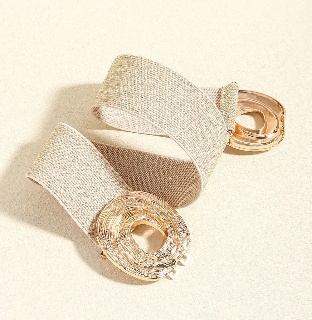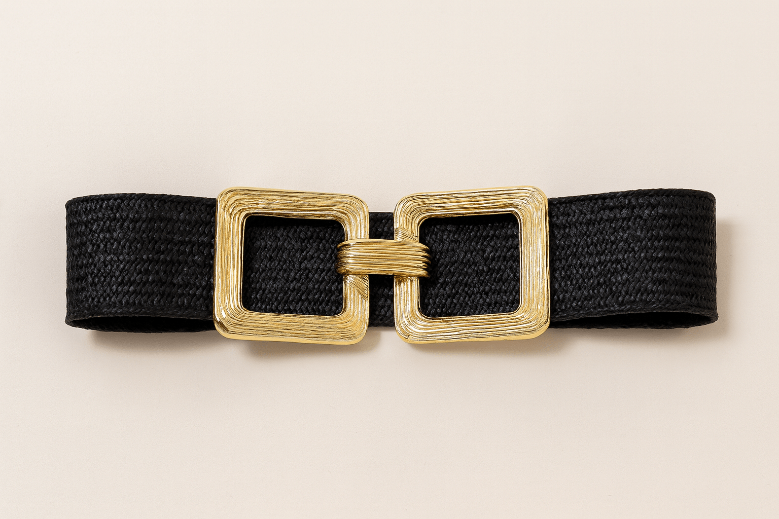 Crafted with a comfortable woven stretch band, they move with you while adding instant polish. Each belt is finished with a statement gold-tone buckle — whether in sculptural circles or textured square links, they’re the ultimate accessories to transform simple outfits into standout looks.