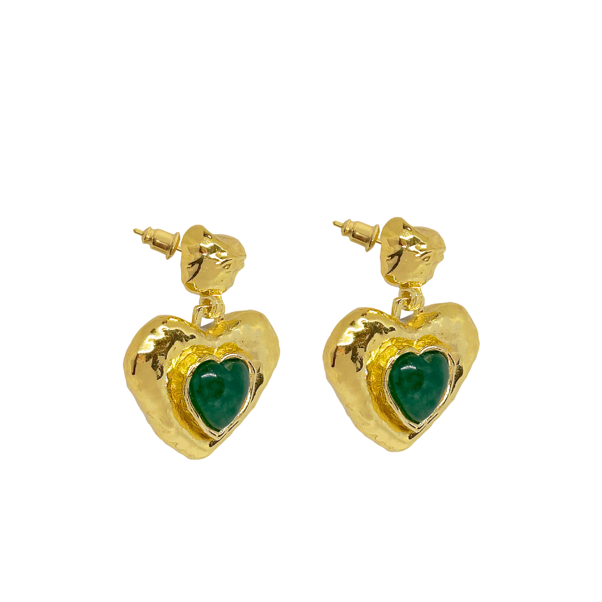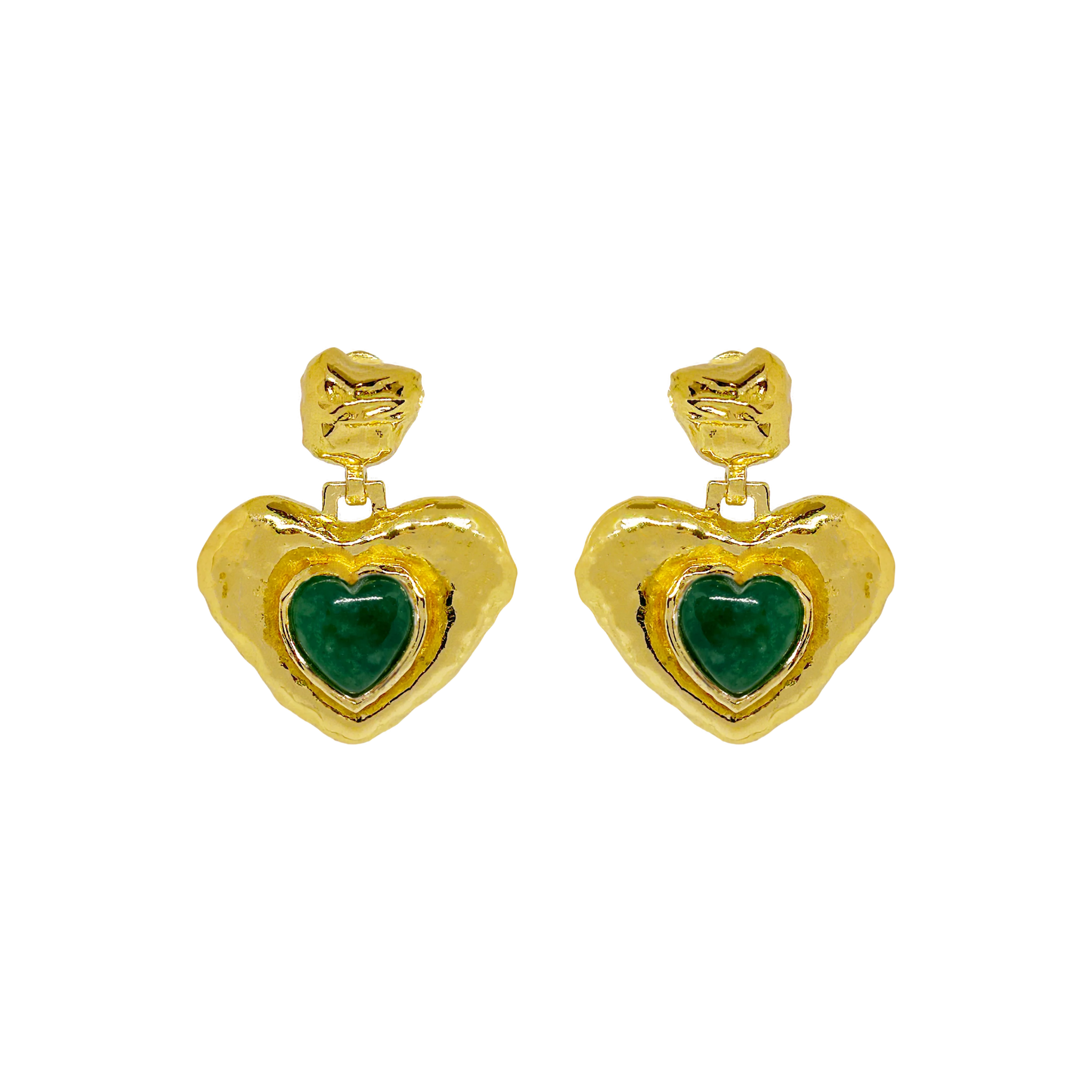A playful take on a classic feminine motif, the Suri Earrings reimagine the heart through the lens of traditional craftsmanship. Hand-finished in radiant gold with a rich Green Aventurine gemstone, the Suri earrings merge age-old design techniques with a fresh, modern spirit. Bold yet tender, they speak to the contemporary woman who honours the past while embracing her own story.
