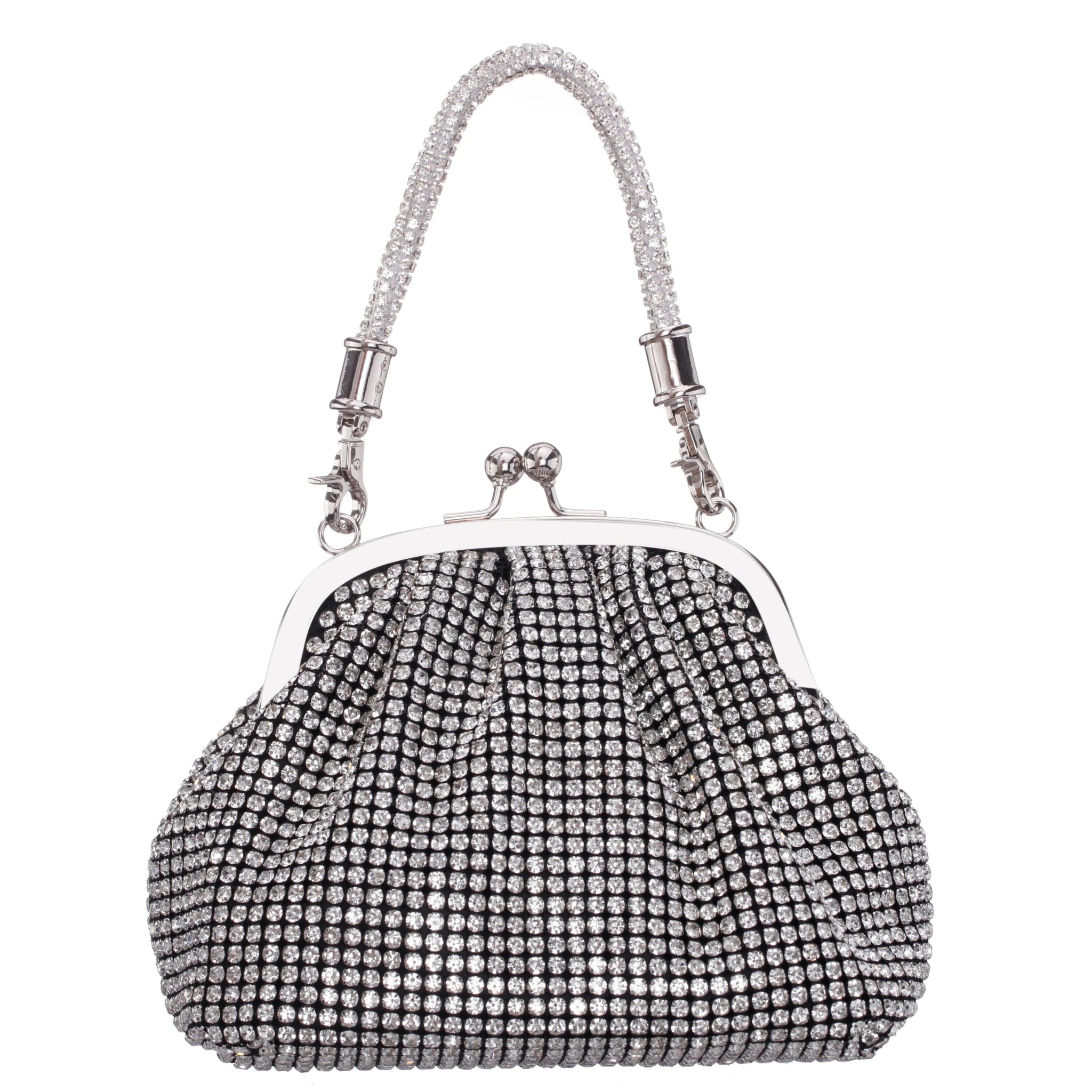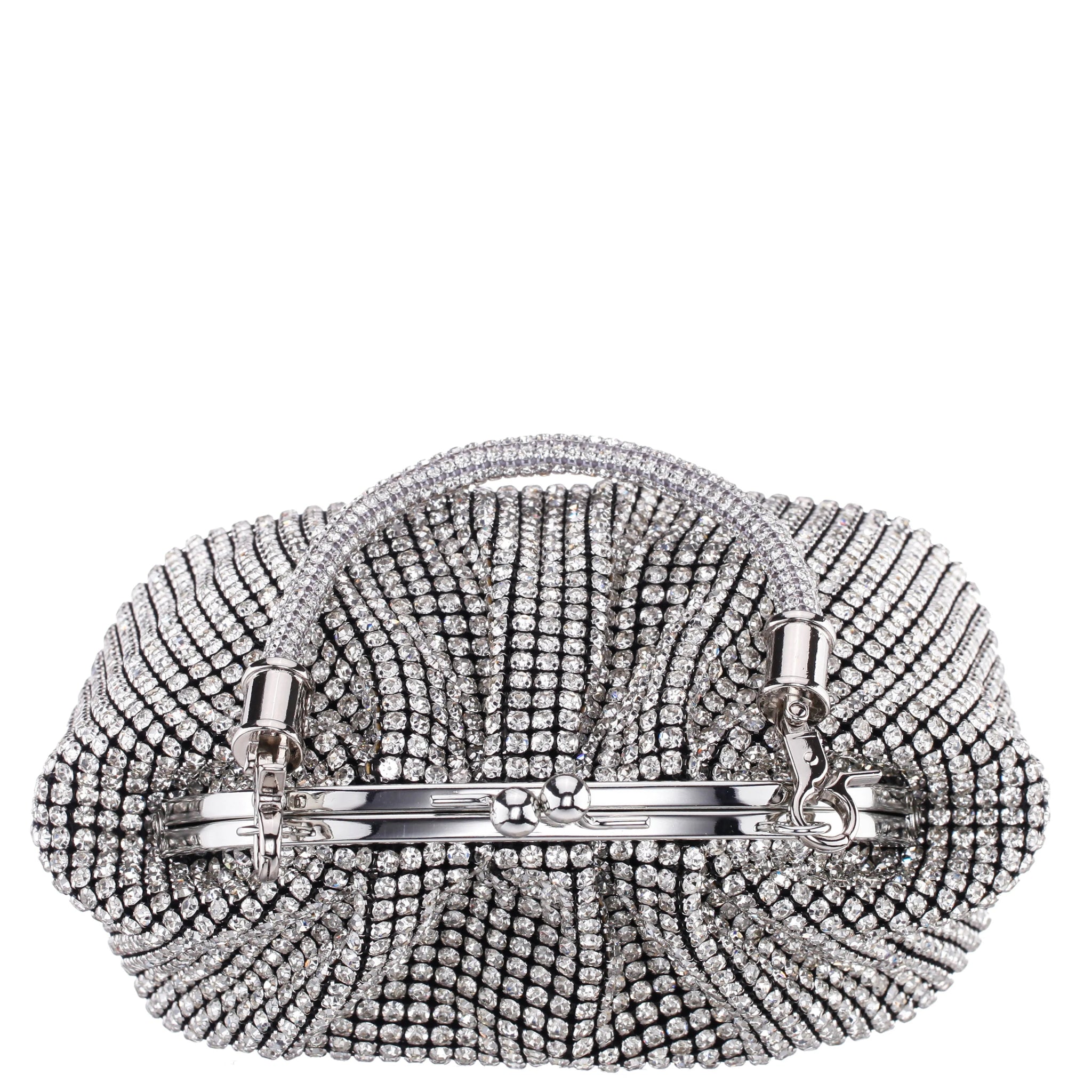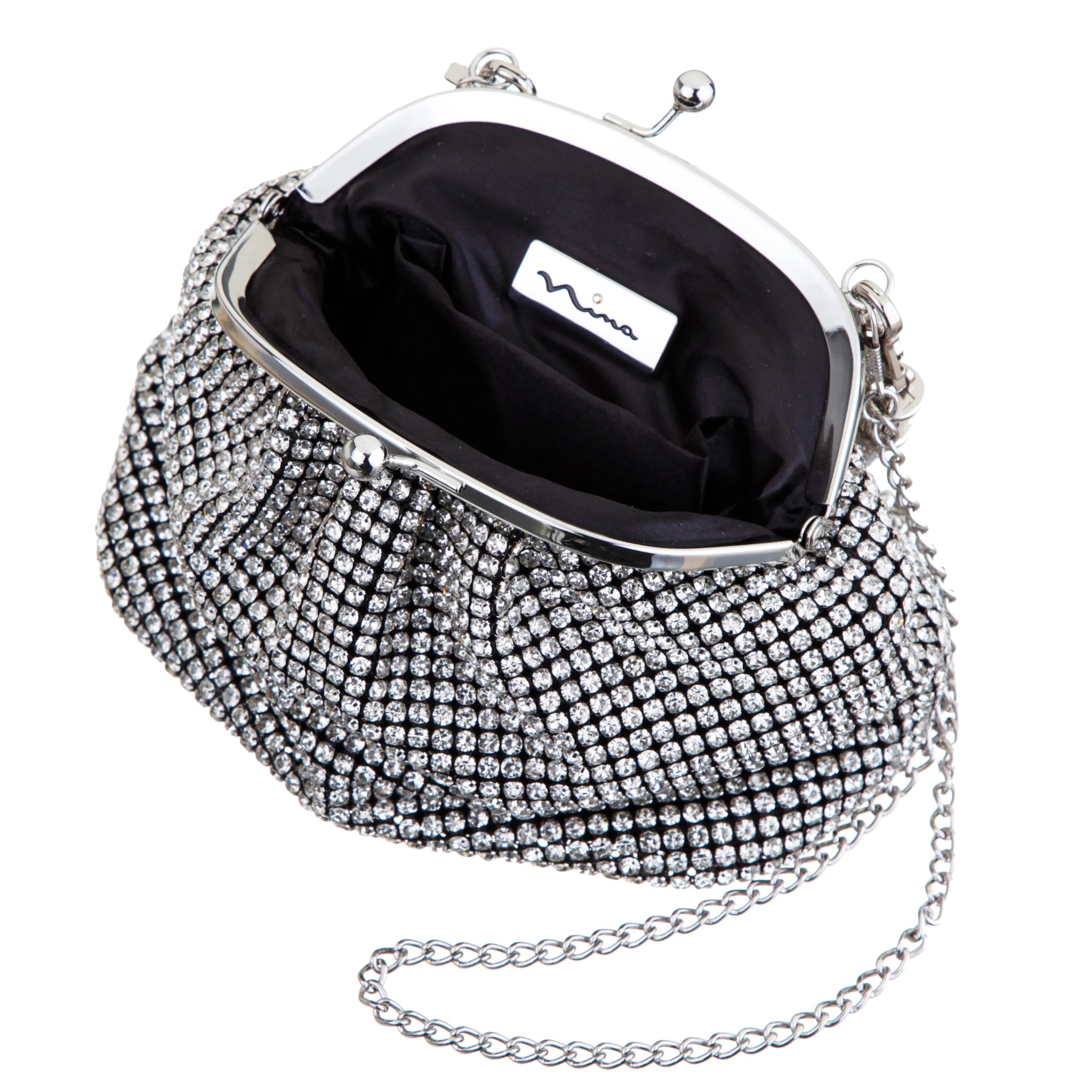 Carry it by the rhinestone handle for cocktail hour chic, or clip on the detachable chain strap to wear crossbody when the night calls for dancing.
