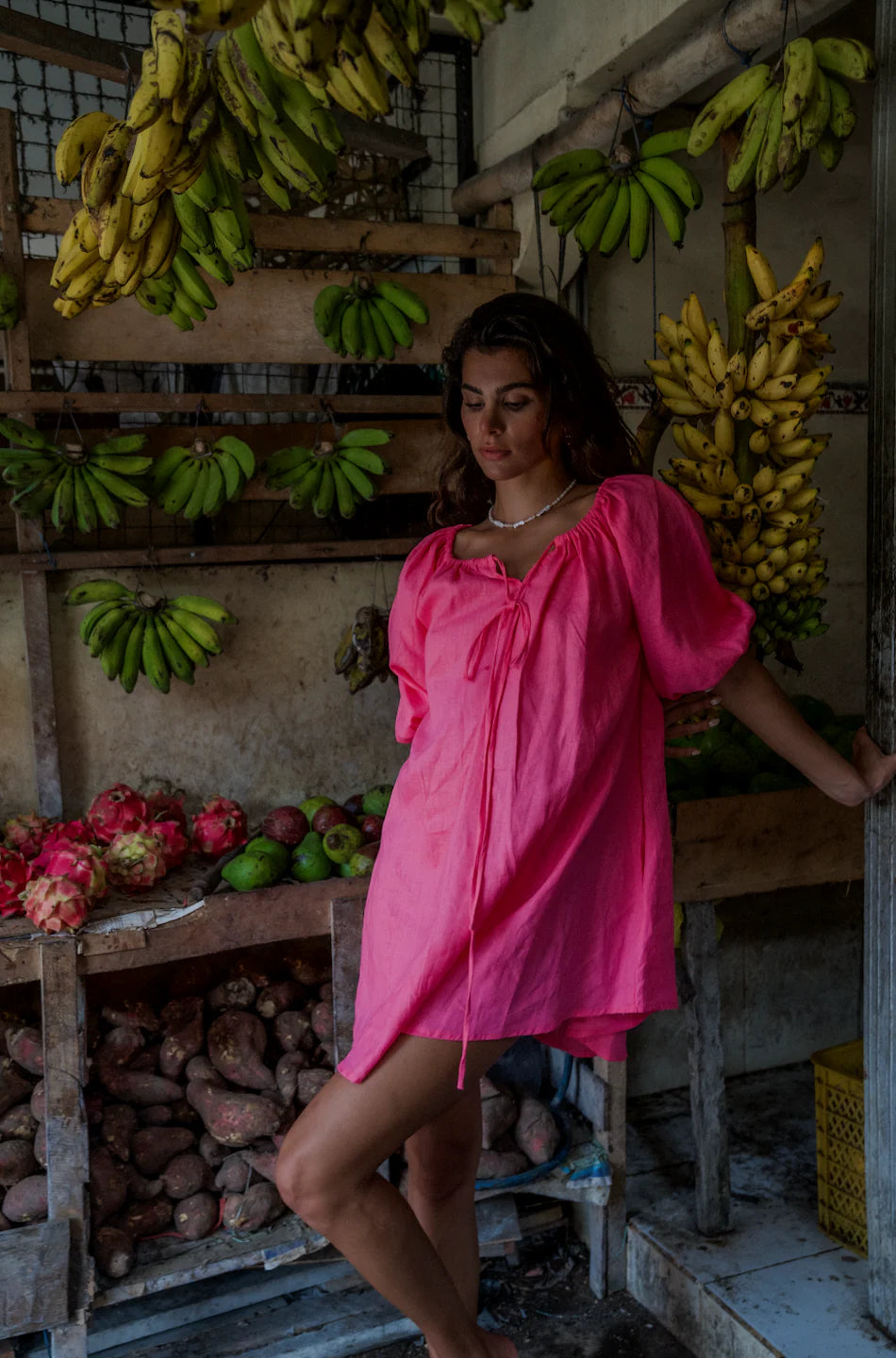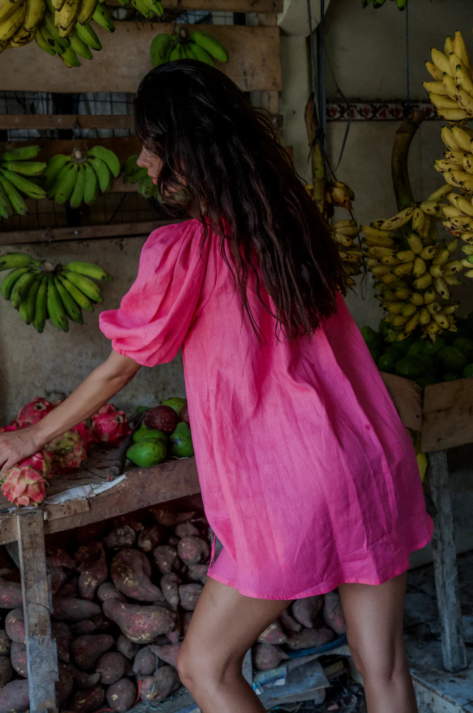 LOTTIE SMOCK DRESS - HOT PINK