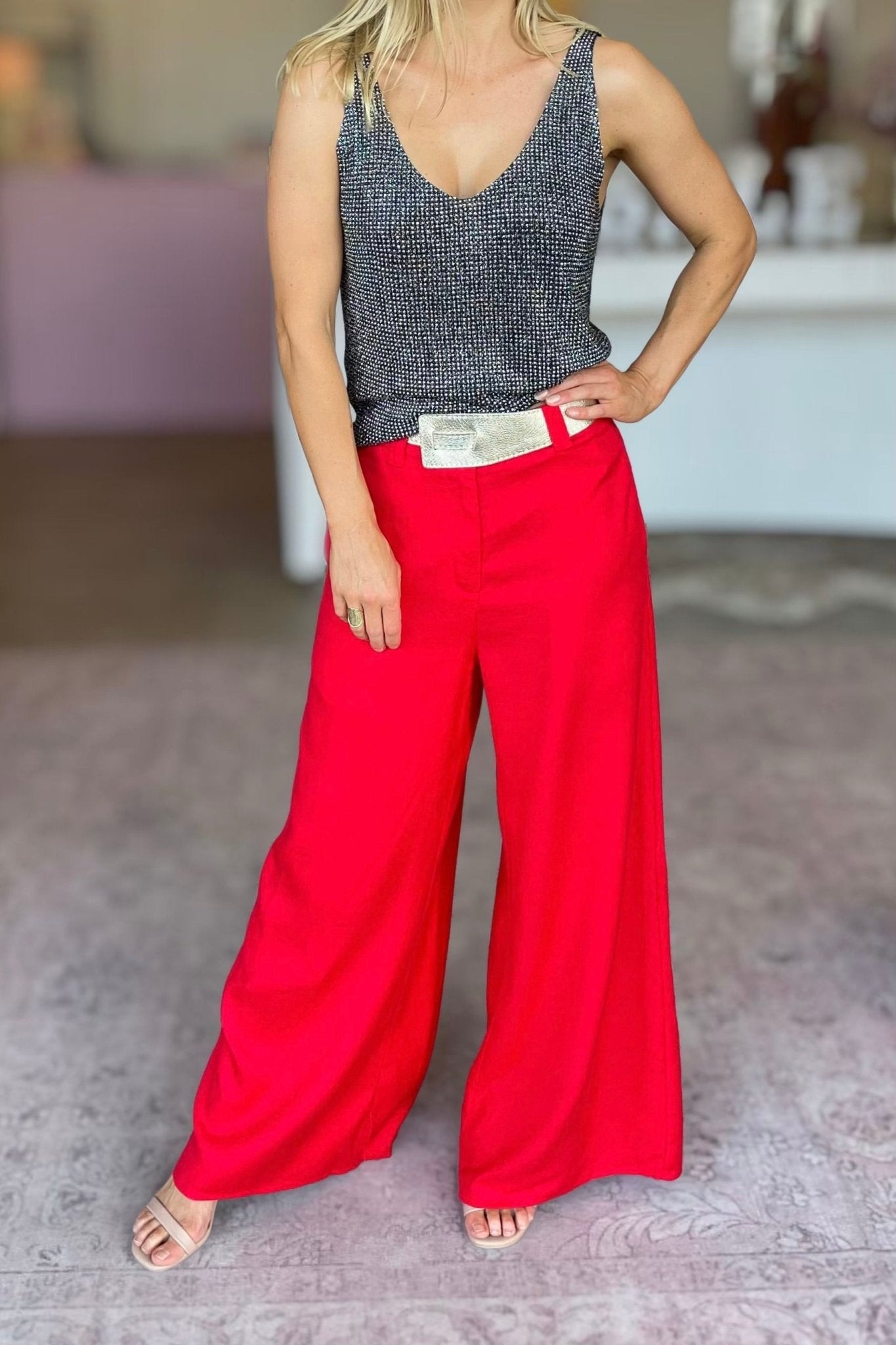 SILK LINEN PANTS - RED